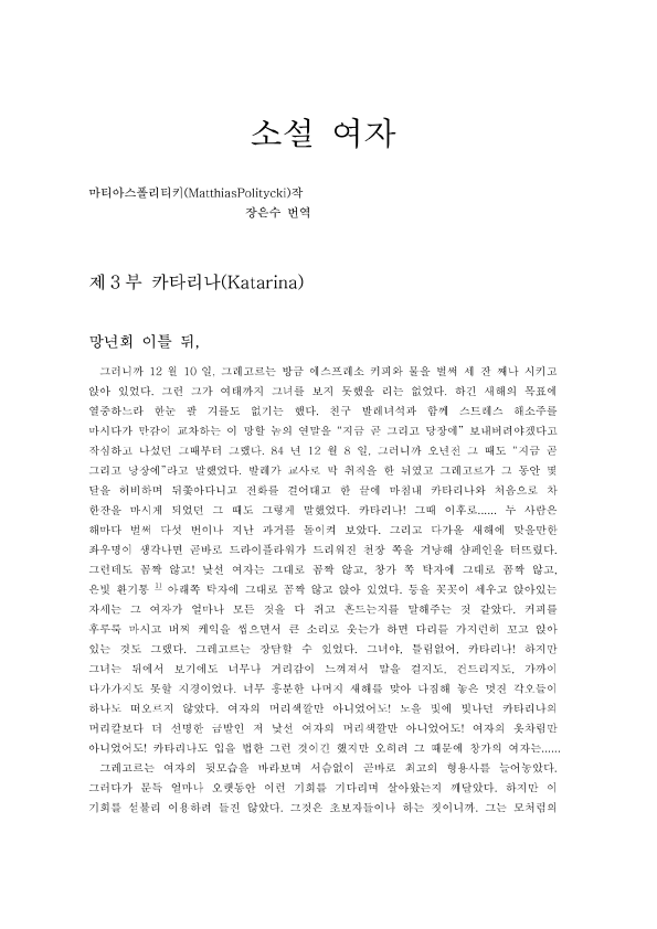 Chicks‘ Novel [KOREANTITLE]Excerpt from „Chicks‘ Novel“ plus note of the translator